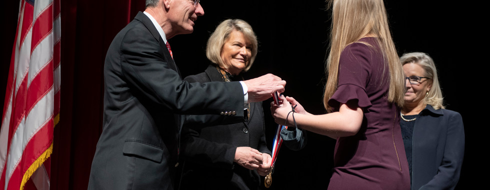 He added, "Ralph Waldo Emerson once said 'Nobody trips over mountains. It is the small pebble that causes you to stumble. Pass all the pebbles in your path and you will find you have crossed the mountain.' These young men and women have certainly done that time and time again, they have shown perseverance through the last year with COVID and have made things happen. Earning a Congressional Medal takes commitment, grit, and a substantial amount of time over several years, and each of our communities have benefitted because these young Wyomingites have passed all the pebbles in their paths."